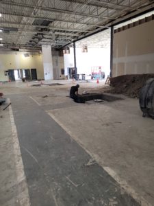 The plumbing underground lines are recently completed to feed the kitchenette and changerooms, as well as the opening to the combined PE storage room.