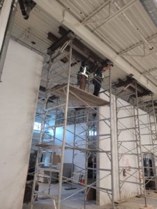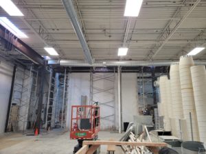 It’s been a very eventful and productive week of finishings after 15 months of behind-the-scenes structural and infrastructural preparations. The “muscle and skin” are being laid upon “good bones” beneath (foundation and flooring), above (roof structure, wiring, and HVAC) and within the new walls (columns, wiring).