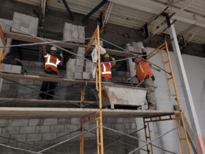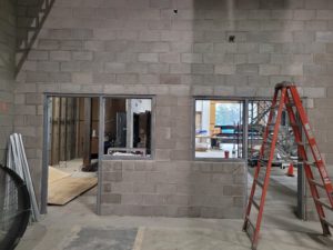 Here are the Area 100 reinstatement progress, and gymnatorium block wall progress: