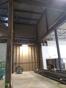 These photos show the west side vertical and horizontal supports for the running track. You can also see the south side vertical steel supports hanging from the joists.