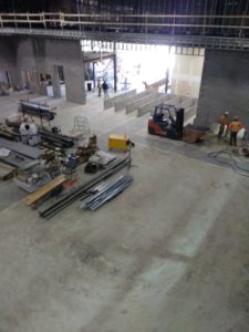 Here you see the running track steel, the cleared out area where the stairwell will go, and a photo of the gym without any supporting columns!