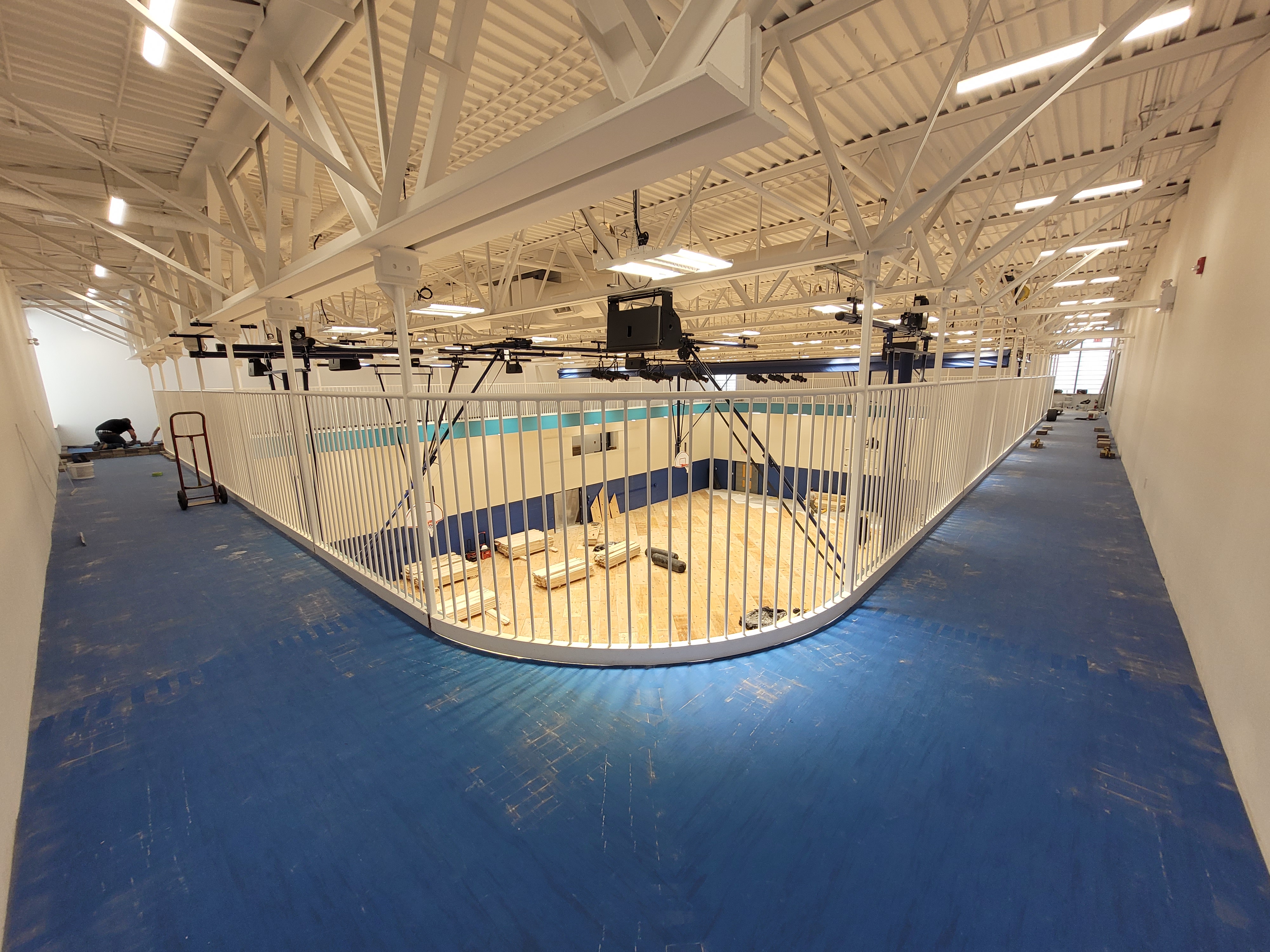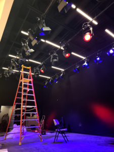 Below is a 360 video of the ceiling. Over the last two days, the Soundbox technicians have installed 12 ceiling joist-mounted speakers for performances, which will be tied-in to the A/V perch control system, and they have been preparing the rigging above the stage for lights and sound.